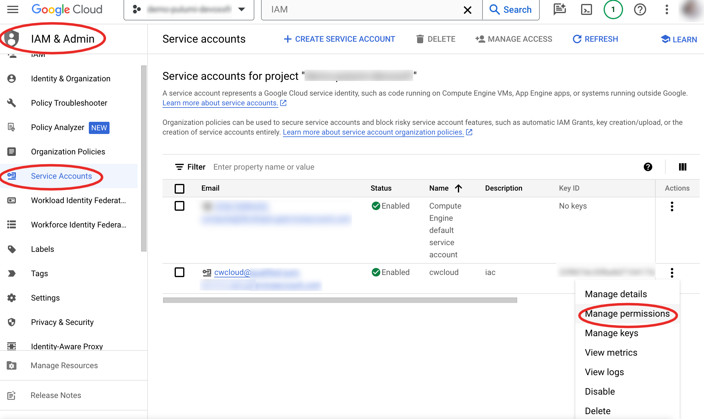 Go to IAM > Service Account > Manage key